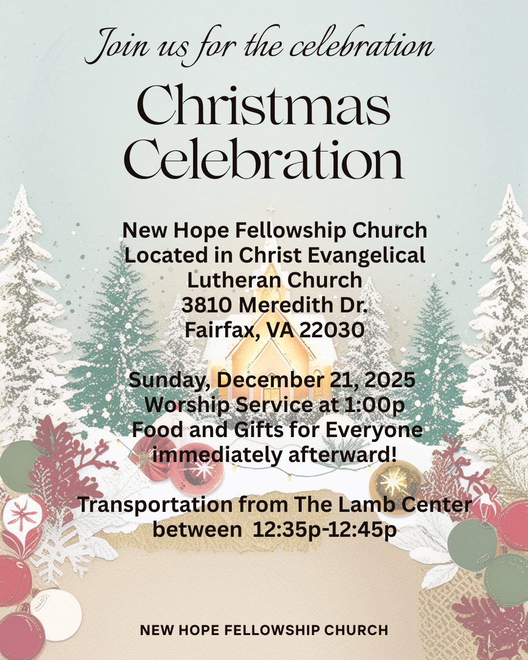 Join us for a joyful Christmas Celebration with New Hope Fellowship Church! ❤️